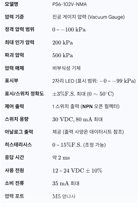 2. À¯¿¬ÇÑ ´ÙÁß Ãâ·Â ±â´É ½ºÀ§Ä¡ Ãâ·Â (NPN): 1°³ÀÇ NPN ¿ÀÇ Ä÷ºÅÍ ½ºÀ§Ä¡ Ãâ·ÂÀ» Á¦°øÇÏ¿© ¼³Á¤µÈ ¾Ð·Â¿¡¼ ON/OFF Á¦¾î°¡ °¡´ÉÇÕ´Ï´Ù. ¾Æ³¯·Î±× Ãâ·Â: Ãß°¡·Î ¾Æ³¯·Î±× Ãâ·ÂÀ» Á¦°øÇÏ¿© ¿ÜºÎ ÀåÄ¡(PLC, ÄÁÆ®·Ñ·¯ µî)¿¡¼ ½Ç½Ã°£ ¾Ð·Â µ¥ÀÌÅ͸¦ ¸ð´ÏÅ͸µÇÒ ¼ö ÀÖ½À´Ï´Ù. Á¶Á¤ °¡´ÉÇÑ È÷½ºÅ׸®½Ã½º (Adjustable Hysteresis): ½ºÀ§Ä¡ µ¿ÀÛÀÇ È÷½ºÅ׸®½Ã½º(ON/OFF Â÷)¸¦ »ç¿ëÀÚ°¡ Á÷Á¢ ¼³Á¤ÇÒ ¼ö ÀÖ¾î, Á¦¾î Á¤¹Ðµµ¸¦ ³ôÀ̰í ÀæÀº ON/OFF µ¿ÀÛÀ» ¹æÁöÇÒ ¼ö ÀÖ½À´Ï´Ù.