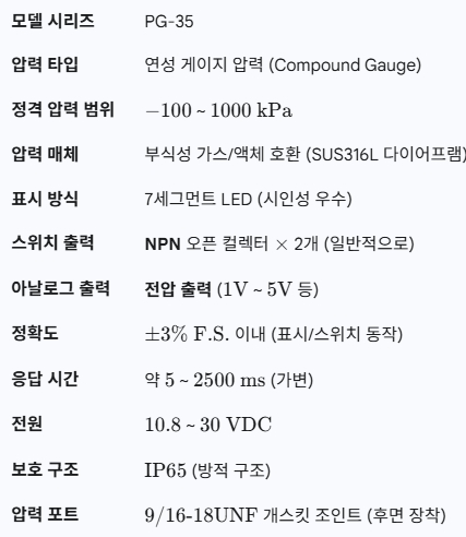 ✨ COPAL (ÄÚÆÈ) µðÁöÅÐ ¾Ð·Â ½ºÀ§Ä¡ PG-35-103R-NVCB COPAL SENSOR PG-35-103R-NVCB´Â ´Ïµ¦ ÄÄÆ÷³ÍÆ®(Nidec Components)¿¡¼ Á¦Á¶ÇÏ´Â PG-35 ½Ã¸®ÁîÀÇ µðÁöÅÐ ¾Ð·Â °ÔÀÌÁö/½ºÀ§Ä¡ÀÔ´Ï´Ù. ÄÄÆÑÆ®ÇÑ Å©±â¿¡ ³ôÀº ½ÃÀμºÀ» Á¦°øÇϸç, ƯÈ÷ ºÎ½Ä¼º °¡½º/¾×ü ¸Åü¿¡ »ç¿ëÇÒ ¼ö ÀÖµµ·Ï ¼³°èµÈ ¿¬¼º °ÔÀÌÁö ¾Ð·Â(Compound Gauge Pressure) ŸÀÔÀÔ´Ï´Ù.