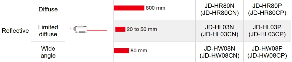 🛒 ±¸¸Å Á¤º¸ | ¸ðµ¨ | ŸÀÔ | °¨Áö °Å¸® | Ãâ·Â ŸÀÔ | Á¢¼Ó ¹æ½Ä | Ư¡ | | JD-HR80P | È®»ê ¹Ý»çÇü | 800mm | PNP | 2M ÄÉÀ̺í | Çìµå ON ŸÀÔ, ¼öÁö ÃæÁø, ŸÀÌ¸Ó | | JD-HR80N | È®»ê ¹Ý»çÇü | 800mm | NPN | 2M ÄÉÀ̺í | NPN Ãâ·Â ¹öÀü |