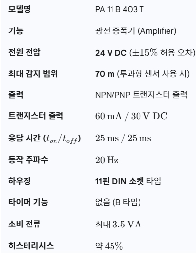 ⚡ TELCO ±¤Àü ¾ÚÇÁ PA 11 B 403 T Telco SensorsÀÇ PA 11 B 403 T´Â Ç¥ÁØ ¿ø°Ý ±¤Àü ½Ã½ºÅÛÀ» À§ÇÑ ´ÜÀÏ Ã¤³Î ÁõÆø±âÀÔ´Ï´Ù. ƯÈ÷ 24 V DC Àü¿ø ȯ°æ¿¡¼ NPN/PNP Æ®·£Áö½ºÅÍ Ãâ·ÂÀ» Á¦°øÇϸç, °ß°íÇÑ »ê¾÷¿ë ¼¾¼ ½Ã½ºÅÛÀ» ±¸ÃàÇÏ´Â µ¥ ÇÙ½ÉÀûÀÎ ¿ªÇÒÀ» ÇÕ´Ï´Ù.
